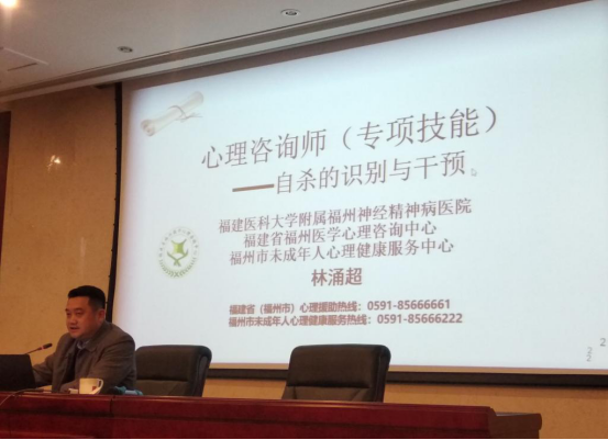 本次系列培訓(xùn)聘請(qǐng)的專(zhuān)家是福州市神經(jīng)病防治院醫(yī)學(xué)心理咨詢(xún)中心主任、福州市未成年人心理健康服務(wù)中心主任、福建醫(yī)科大學(xué)應(yīng)用心理學(xué)系兼職副教授、中國(guó)心身醫(yī)學(xué)學(xué)院講師團(tuán)專(zhuān)家、副主任醫(yī)師林涌超,還有福州市神經(jīng)精神病防治院、福建省福州醫(yī)學(xué)心理咨詢(xún)中心教學(xué)秘書(shū)、國(guó)家二級(jí)心理咨詢(xún)師、主治醫(yī)師、中級(jí)心理治療師鄒曄峰。系列培訓(xùn)的對(duì)象包括心理健康教育中心成員、各系心理輔導(dǎo)員、專(zhuān)職輔導(dǎo)員、19級(jí)兼職輔導(dǎo)員以及各班心理委員。