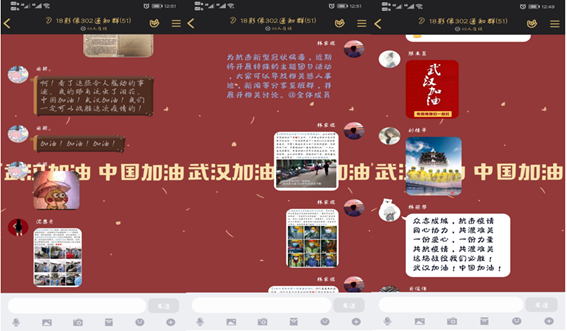 主題研討,分享心得體會(huì)。各班團(tuán)支部在線上分享“抗疫”中的感人事跡、新聞。疫情時(shí)期涌現(xiàn)出來的許許多多的無私奉獻(xiàn)的逆行者,有不計(jì)回報(bào)的捐獻(xiàn)者、默默無聞的給予者,還有包括我校校友在內(nèi)的一線醫(yī)護(hù)人員。在分享環(huán)節(jié),同學(xué)們交流了對(duì)于本次疫情的看法,表達(dá)了希望本次疫情盡快平息的期盼以及對(duì)一線人員們的敬佩與祝愿。