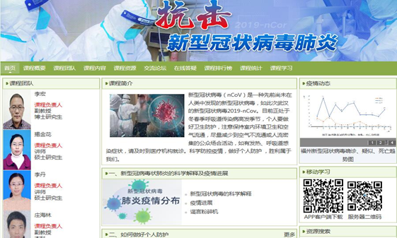 他向系主任主動請纓,并在系里的支持下,組織指導(dǎo)預(yù)防醫(yī)學(xué)教研室全體教師在學(xué)校的在線學(xué)習(xí)空間“天使之城”上開設(shè)了《新型冠狀病毒的個人防護(hù)與學(xué)校衛(wèi)生》課程,面向?qū)W院全體師生員工,旨在貫徹落實堅持國家課程學(xué)習(xí)與疫情防控知識學(xué)習(xí)相結(jié)合的工作要求,方便學(xué)生在家通過天使之城網(wǎng)站獲得新冠肺炎疫情的最新準(zhǔn)確信息;通過傳授公共衛(wèi)生與安全知識,提高學(xué)生疫情防控能力,為學(xué)生健康平安返校做好準(zhǔn)備。課程中還穿插了一些防疫阻擊戰(zhàn)中涌現(xiàn)的先進(jìn)事跡,弘揚社會美德,增強(qiáng)學(xué)生愛黨愛國愛人民愛社會主義的思想情感。同時,他還與預(yù)防組的老師們一起錄制《閩衛(wèi)院開學(xué)疫戰(zhàn)第一課》微課,供將來學(xué)院開學(xué)時師生學(xué)習(xí)使用。