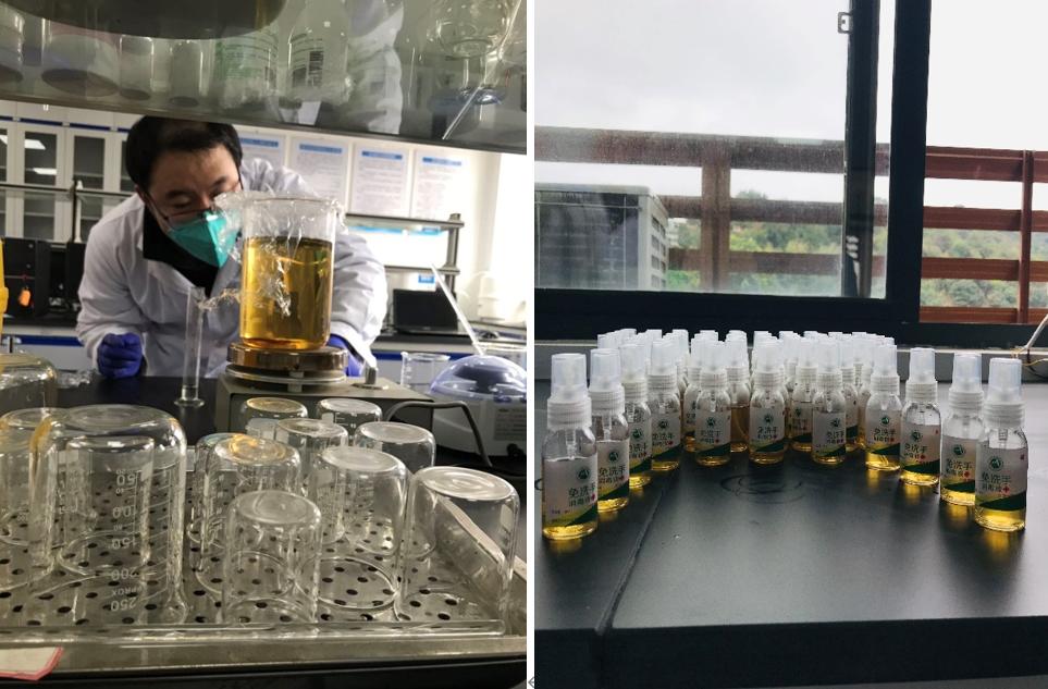 專業(yè)上的應(yīng)用型科研,能為學(xué)院的防疫工作做點什么?教學(xué)、科普宣傳工作之外,李宏老師想再多做一點。他將已獲得國家發(fā)明專利授權(quán)的免洗手洗手液配方公開,結(jié)合所承擔(dān)的學(xué)院創(chuàng)新團(tuán)隊項目中消毒用品開發(fā),在科研處的指導(dǎo)下,聯(lián)合工程中心、藥學(xué)系的同事,克服物資緊張等困難,緊急生產(chǎn)免洗手消毒液,供學(xué)院師生開學(xué)使用。