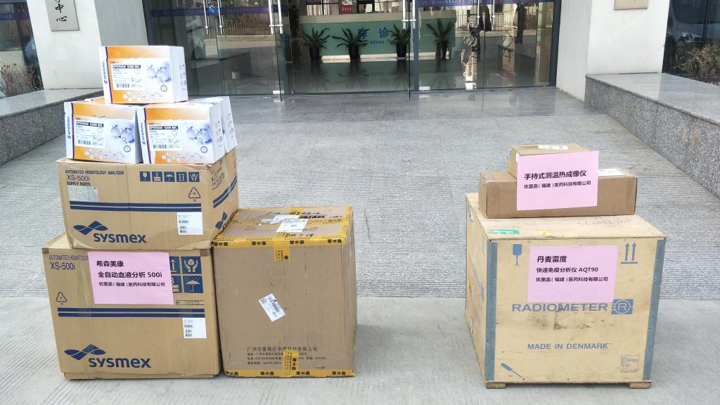 2月28日,優(yōu)里嘉(福建)醫(yī)藥科技有限公司緊急調(diào)配貨源,為我院師生捐贈手持式測溫熱成像儀,并專程派出企業(yè)高管吳雪華、周公平到?,F(xiàn)場指導安裝及使用。與手持式測溫熱成像儀一起送來的,還有快速免疫分析儀、全自動血液分析儀等一批新型冠狀病毒肺炎核酸檢測相關(guān)設(shè)備,以及100個N95型口罩。企業(yè)表示,后續(xù)還將根據(jù)貨源情況調(diào)配其他防疫設(shè)備與物資捐贈我院,幫助學院做好師生開學前的防疫準備工作。