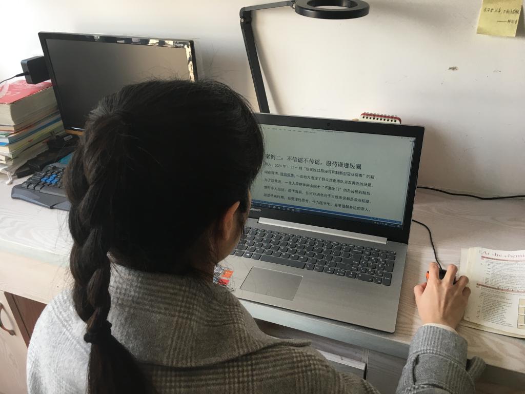 黃海云老師在整理“Don't believe rumors. Don't spread rumors. Don't create rumors.”(不信謠,不傳謠)的教學(xué)內(nèi)容,實(shí)施課程思政,鼓勵(lì)學(xué)生在疫情期間,面對(duì)病毒,科學(xué)了解,積極防御,面對(duì)恐慌,更要做到不傳謠不信謠,傳播正能量。