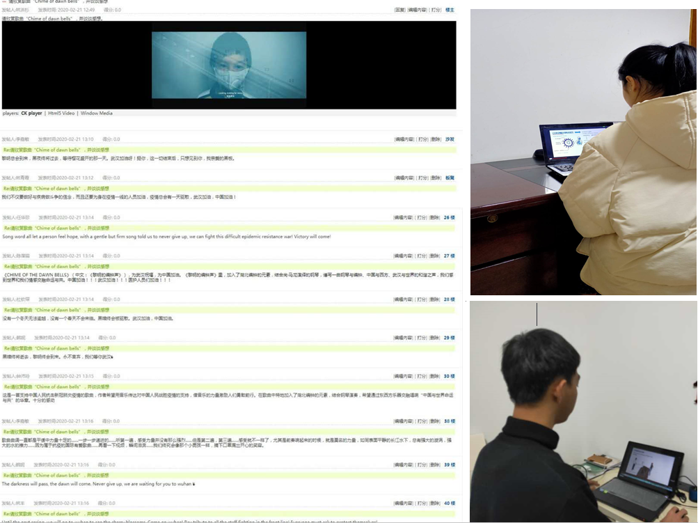 危急時(shí)刻也是教育的最佳時(shí)機(jī)。盧叢珊和林洪杉兩位年輕的黨員教師,勇?lián)厝?,積極獻(xiàn)計(jì)獻(xiàn)策,利用多種英語(yǔ)學(xué)習(xí)資源(英語(yǔ)新聞、宣揚(yáng)抗擊疫情的英文歌曲、趣配音等),在天使之城學(xué)習(xí)平臺(tái)上,與學(xué)生們積極互動(dòng)。通過(guò)英文歌曲、趣配音等大家喜聞樂(lè)見(jiàn)的形式,向?qū)W生宣揚(yáng)正能量,在他們心中植入作為醫(yī)學(xué)生,要無(wú)愧于時(shí)代擔(dān)當(dāng)?shù)男拍?。通過(guò)英語(yǔ),教會(huì)學(xué)生向世界發(fā)聲,中國(guó)有戰(zhàn)勝疫情的實(shí)力和信心。學(xué)生們積極參與學(xué)習(xí),觀看英語(yǔ)視頻,學(xué)唱英文歌曲,了解冠狀病毒的傳播途徑和預(yù)防方法,在評(píng)論區(qū)里熱烈討論,表達(dá)了向前輩看齊,年輕一代勇于擔(dān)當(dāng),堅(jiān)信中國(guó)人民能戰(zhàn)勝疫情的情懷。
