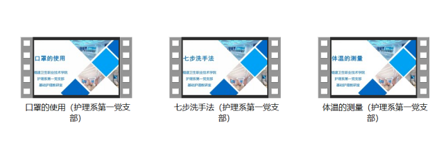 在支部書(shū)記賈箐箐的帶領(lǐng)下,制作了《七步洗手法》、《體溫的測(cè)量》等相關(guān)防護(hù)操作宣傳視頻,將護(hù)理學(xué)基礎(chǔ)專(zhuān)業(yè)知識(shí)融入其中,讓學(xué)生在掌握疫情相關(guān)防護(hù)知識(shí)的同時(shí),學(xué)習(xí)理解專(zhuān)業(yè)知識(shí),做到“停課不停學(xué)”;同時(shí),也讓非醫(yī)學(xué)類(lèi)專(zhuān)業(yè)的教師可以掌握基礎(chǔ)的防控操作,正確執(zhí)行七步洗手法、戴脫口罩、測(cè)量體溫等操作。