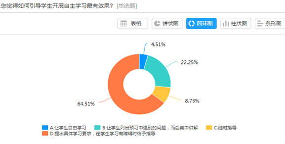 87.89%的學(xué)生會及時老師完成所布置的作業(yè)或小測。60.28%的學(xué)生課堂上會主動積極提問,上課期間學(xué)生互動性降低時,81.97%教師會及時調(diào)整教學(xué)方式,扭轉(zhuǎn)學(xué)生注意力。在引導(dǎo)學(xué)生開展自主學(xué)習(xí)方面,當(dāng)學(xué)生遇到問題時,更是通過多種方式解決:有的老師讓學(xué)生列出預(yù)習(xí)中遇到的問題,而后集中講解;有的老師提出具體學(xué)習(xí)要求,在學(xué)生學(xué)習(xí)有障礙時給予指導(dǎo);有的老師隨時給予指導(dǎo)。