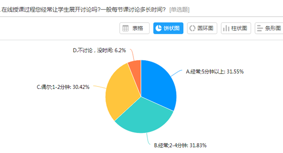 93.8%的老師在線授課過程每節(jié)課均開展課堂討論活動,多提供學(xué)生自主思考機會。
