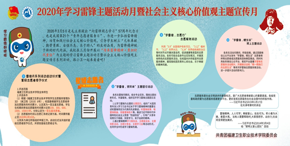 開展雷鋒月暨社會(huì)主義核心價(jià)值觀主題宣傳月活動(dòng)。各級(jí)團(tuán)學(xué)組織在雷鋒月期間,弘揚(yáng)雷鋒精神,組織認(rèn)定341名星級(jí)志愿者,開展主題團(tuán)日活動(dòng),各團(tuán)支部“贊抗疫英雄,學(xué)雷鋒精神”,通過(guò)QQ群、微信群等方式講身邊抗擊疫情的“雷鋒式”校友榜樣故事,致敬“逆行”的活雷鋒。各系組織 “曬一曬我們的志愿生活”活動(dòng),開展“全民共同抗疫 志愿我先行”抗疫防控知識(shí)競(jìng)賽,“弘揚(yáng)雷鋒精神”征文比賽、手抄報(bào)比賽、網(wǎng)絡(luò)植樹、海報(bào)繪畫等線上活動(dòng)。