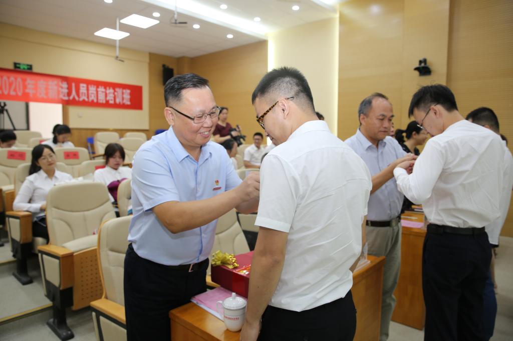 10月6日,學院2020年新進教職人員崗前培訓開班儀式在實訓樓3樓錄播廳隆重舉行。學院黨委書記曾武祈、院長許能鋒、黨委副書記李美華、紀委書記游鋒、副院長陳貞健、黃銘珊、鄭翠紅,以及相關處室負責人、各系黨總支書記出席了此次開班儀,李美華副書記主持。