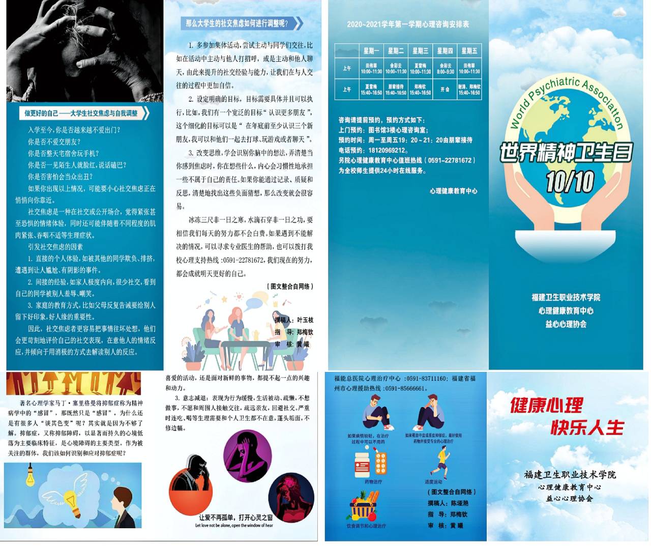 2020年第29個世界精神衛(wèi)生日的主題是“弘揚抗議精神,護佑心理健康”,為切實做好師生的心理健康教育工作,有效幫助同學們提高疫情防控期間對心理健康的重視程度,引導廣大學生保持積極心態(tài),快樂成長。我院心理健康教育中心攜同各系二級心理輔導站、益心心理協(xié)會開展了世界精神衛(wèi)生日主題宣傳教育活動。