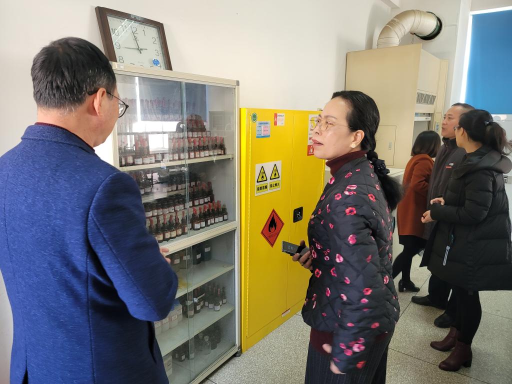 鄭翠紅一行先后實地察看了藥學(xué)院、護(hù)理學(xué)院、醫(yī)學(xué)技術(shù)系的教學(xué)實訓(xùn)室。本次檢查的內(nèi)容包括實訓(xùn)室的設(shè)備運行情況、消防安全、用電安全、通風(fēng)情況以及環(huán)境衛(wèi)生等有關(guān)安全細(xì)節(jié),重點對特殊儀器設(shè)備運行安全、危化品及易燃易爆品儲存、實訓(xùn)耗材購置管理及廢液中轉(zhuǎn)回收等情況進(jìn)行了檢查。