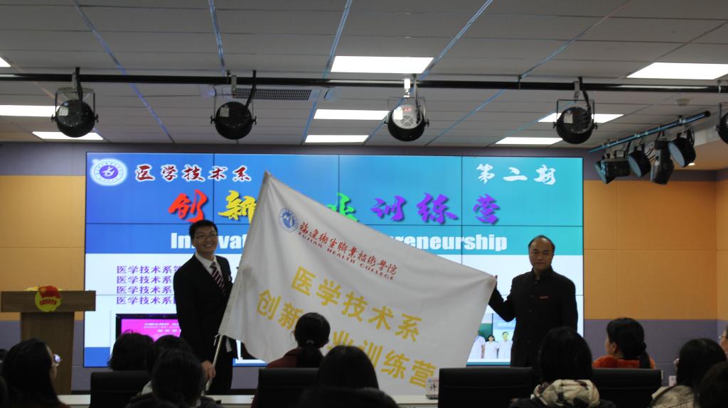 最后,許能鋒向醫(yī)學(xué)技術(shù)系創(chuàng)新創(chuàng)業(yè)訓(xùn)練營授旗并致以熱烈的祝賀。他結(jié)合初入職場(chǎng)的經(jīng)歷與同學(xué)們分享自己的感悟,并向在場(chǎng)師生們提出樹立創(chuàng)新意識(shí)、培養(yǎng)創(chuàng)新思維、積極參與創(chuàng)新實(shí)踐的期望。