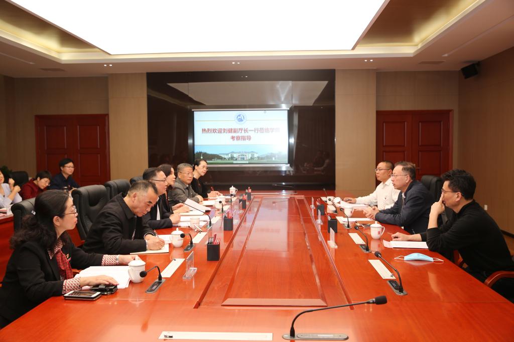劉健對我校的辦學基礎、辦學特色、辦學成績給予了充分肯定,他希望我校在省級示范性現(xiàn)代高職院校的建設基礎上,繼續(xù)努力推進內涵建設,在深化產教融合上做實產業(yè)學院,在破解本科層次職業(yè)教育機制上提升師資隊伍水平,在與國(境)外高水平學校對標對表上加強對外開放辦學,在與行業(yè)企業(yè)聯(lián)系溝通上進一步深度融合發(fā)展,乘勢而上,奮力前行,努力推動學校邁入新的發(fā)展階段,取得新的更大成績。
