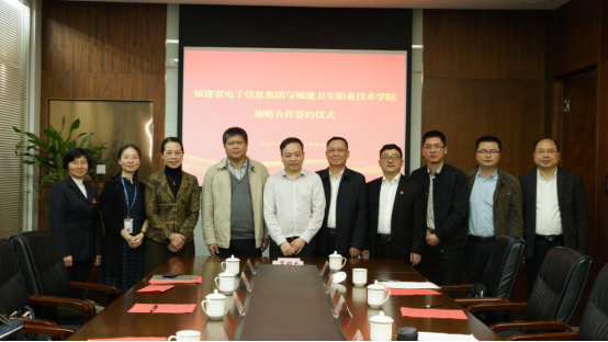 3月27日下午,福建衛(wèi)生職業(yè)技術(shù)學(xué)院與福建省電子信息集團(tuán)黨建結(jié)對及戰(zhàn)略合作協(xié)議簽約儀式在省電子信息集團(tuán)17樓視頻會議室舉行。省衛(wèi)健委規(guī)劃信息處主任科員劉文明、學(xué)院黨委曾武祈書記、集團(tuán)黃舒副總經(jīng)理出席儀式并講話,學(xué)院蘇友新院長、鄭翠紅副院長,集團(tuán)規(guī)劃部胡巖潔及雙方的相關(guān)領(lǐng)導(dǎo)和部門負(fù)責(zé)人共同見證簽約時(shí)刻。