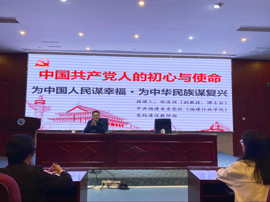 鄭濟(jì)洲作《中國共產(chǎn)黨的初心和使命》專題講座。他從“苦難與輝煌、立場與思想、夢想與實(shí)踐”三個方面闡述了中國共產(chǎn)黨“民族復(fù)興的歷史使命、服務(wù)人民的永恒初心及偉大斗爭的時代精神”;從中華民族五千年的文明歷史到中國共產(chǎn)黨的崛起、發(fā)展,強(qiáng)調(diào)中國共產(chǎn)黨人的初心和使命,就是為中國人民謀幸福,為中華民族謀復(fù)興。