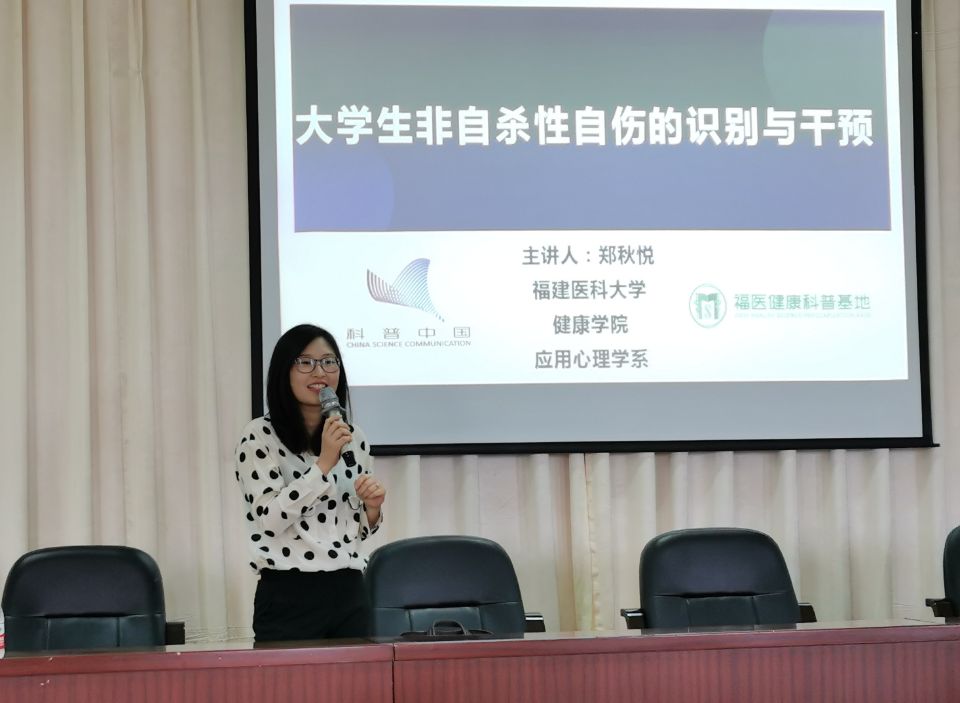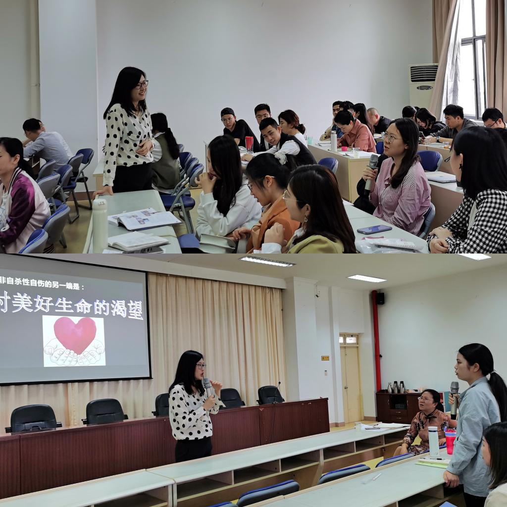 為了幫助輔導(dǎo)員提高學(xué)生心理工作業(yè)務(wù)能力,更好地幫助學(xué)生解決心理問題,2021年4月27日上午,我校在行政樓六樓會議室舉行《大學(xué)生非自殺性自傷的識別與干預(yù)》主題講座。本次講座的主講嘉賓是國家二級心理咨詢師、福建醫(yī)科大學(xué)心理健康指導(dǎo)中心心理咨詢師鄭秋悅老師。講座由學(xué)生工作部副部長張麗萍主持,全體專兼職輔導(dǎo)員與心理咨詢師參加。