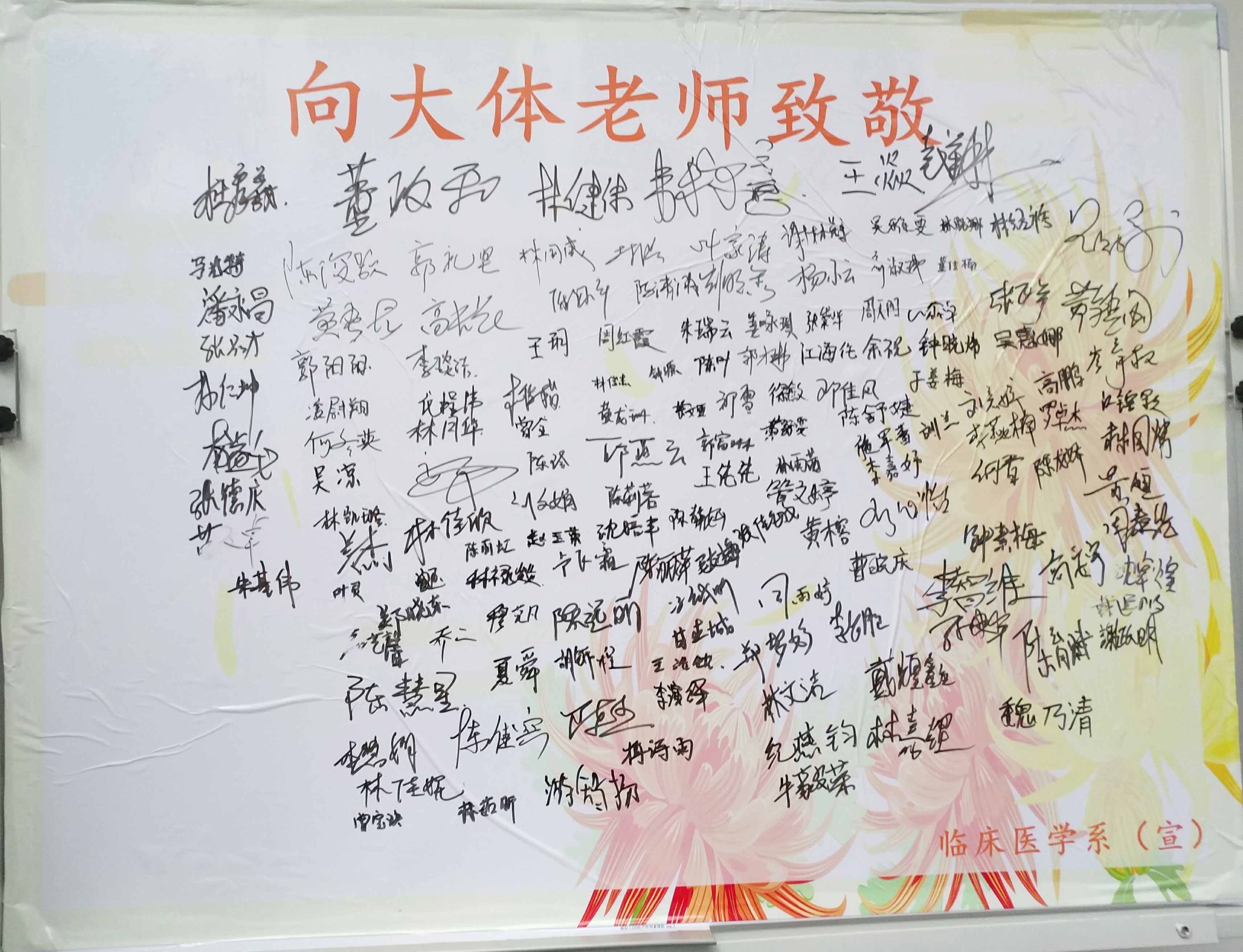 “大體老師”是醫(yī)學(xué)界對遺體捐贈者的尊稱。這些遺體捐獻者用他們的軀體,讓學(xué)生們直觀了解人體基本知識,是醫(yī)學(xué)學(xué)生的“無語良師”。活動開始,學(xué)生代表周天陽和鄭妍冰分別帶來朗誦與感悟分享,醫(yī)學(xué)教育離不開人體標(biāo)本,正是有了大體老師的無私奉獻,才能培養(yǎng)出醫(yī)術(shù)精湛的大夫。接著,全體老師與學(xué)生為大體老師默哀一分鐘,為這份無言的奉獻表達最崇高的敬意,并敬獻菊花,在活動簽字墻簽字留念。