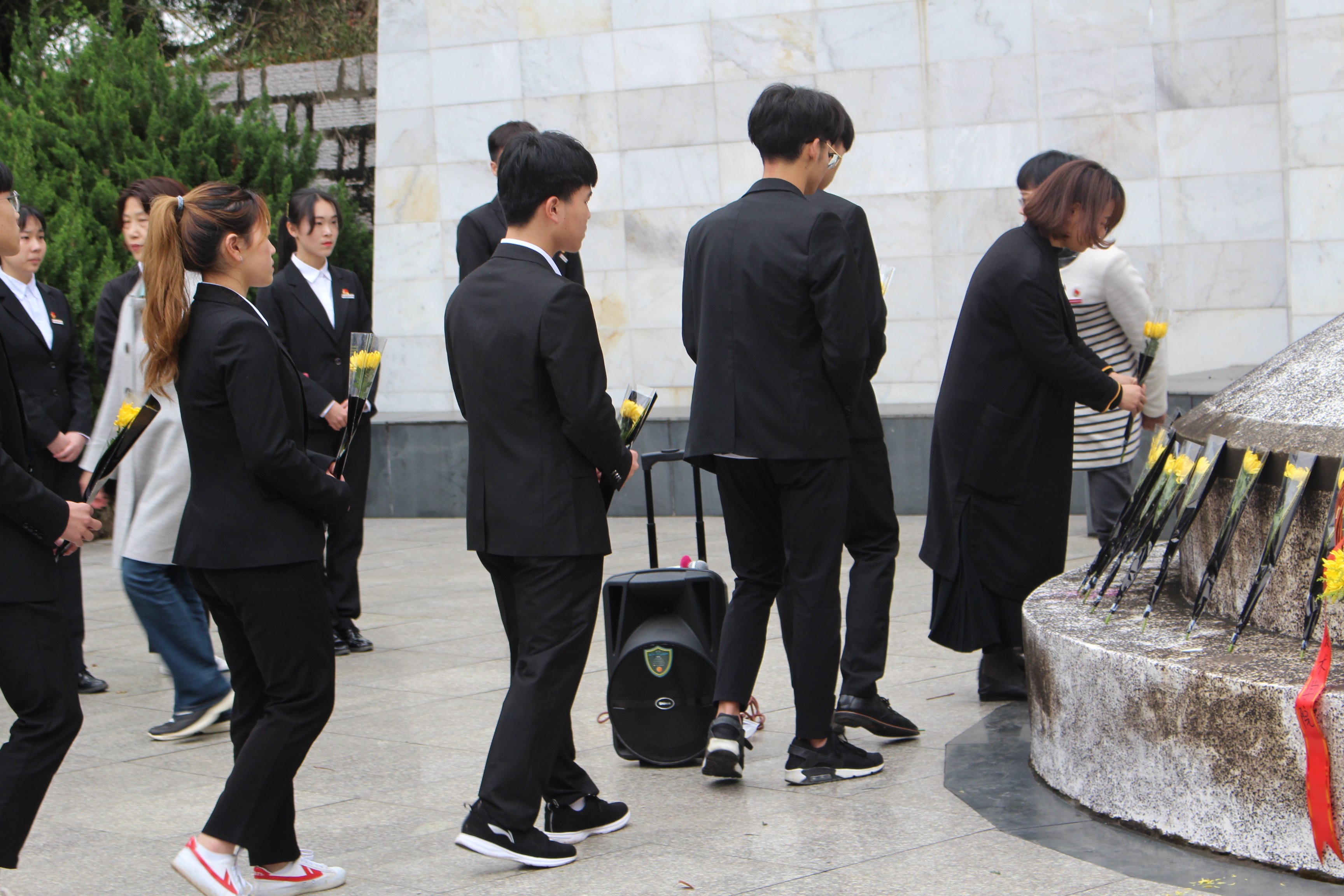 師生獻(xiàn)花緬懷先輩