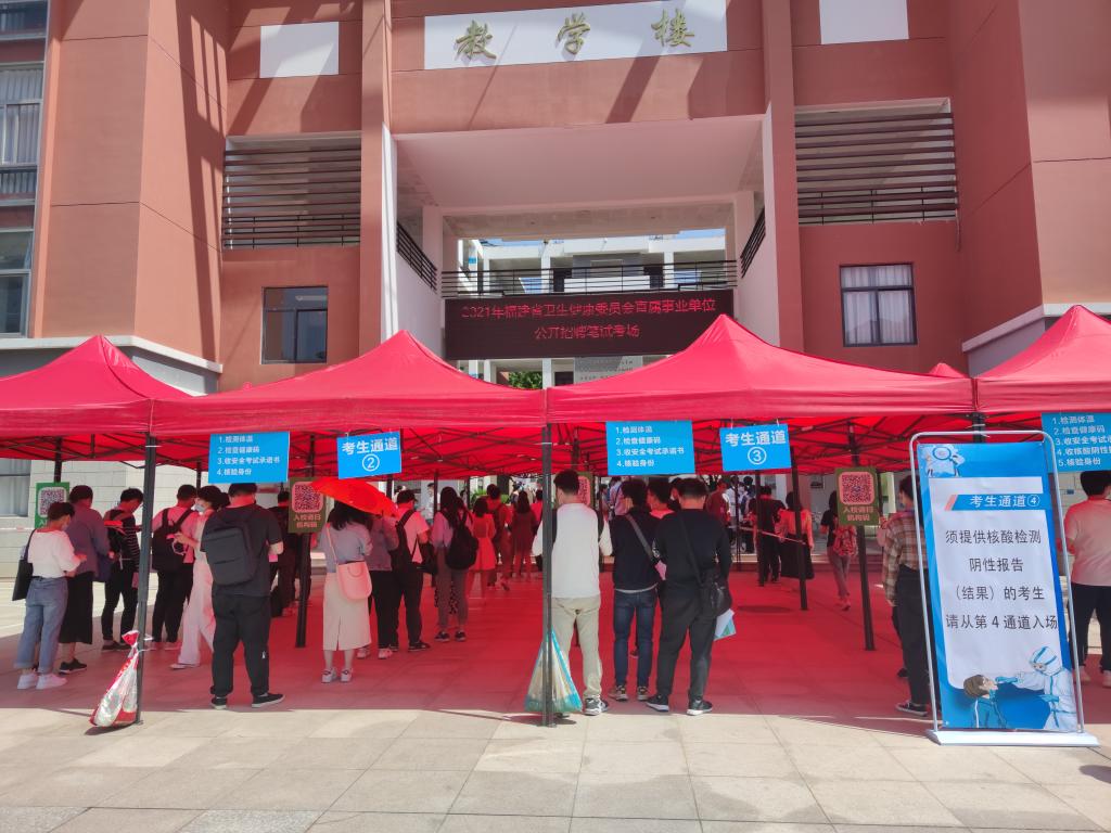 福建省衛(wèi)健委直屬事業(yè)單位公開招聘考試,考試時(shí)間為4月30日。共有招聘單位9家,招聘崗位154個(gè),計(jì)劃招聘工作人員242人,通過(guò)資格審核2573人。考試采取人機(jī)對(duì)話考試和紙筆考試兩種形式,其中參加人機(jī)對(duì)話考試1261人(2個(gè)場(chǎng)次,各12間試室),參加紙筆考試1312人(1個(gè)場(chǎng)次,31間試室)。另設(shè)置隔離考場(chǎng)2間。
