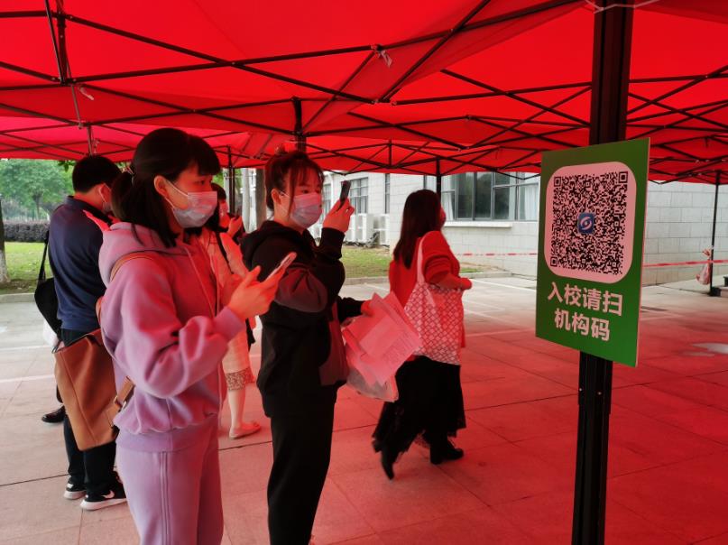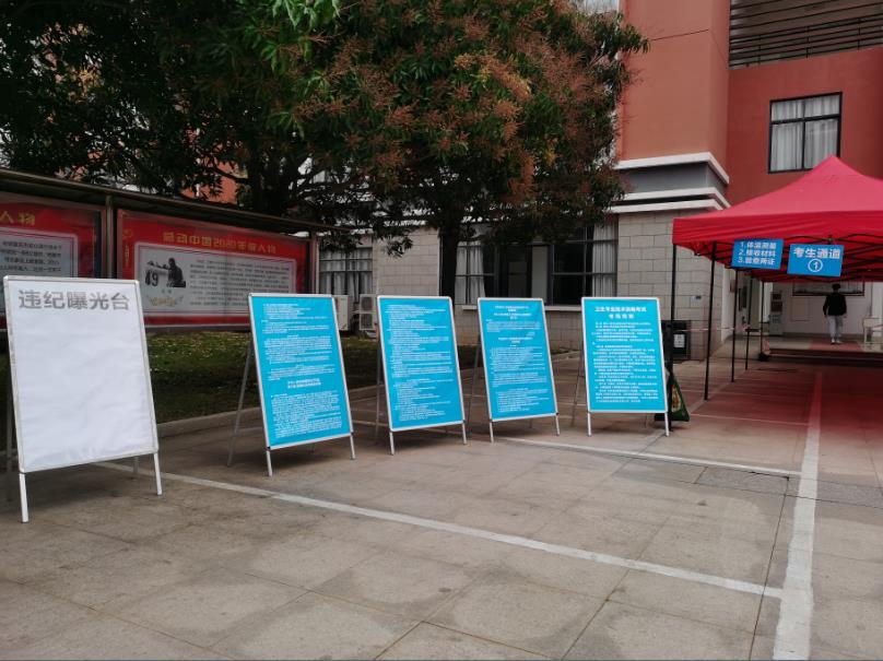 考場(chǎng)共設(shè)立五條考生入場(chǎng)檢測(cè)通道及一條防疫通道,制作了提示各類提示引導(dǎo)牌、考場(chǎng)平面圖、考場(chǎng)紀(jì)律、違紀(jì)曝光臺(tái)等