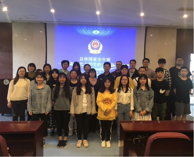 講座中,何濤警長首先對總體國家安全觀作了簡要概述,結(jié)合敘利亞內(nèi)戰(zhàn)等豐富案例,生動地介紹了國家安全與公民人身安全息息相關(guān)、我國高度重視國家安全及公民安全利益等內(nèi)容。隨后,何警長從我國外部安全總體形勢、我國國內(nèi)政治安全總體形勢兩方面分析了現(xiàn)階段我國國家安全的總體形勢,特別對高校領(lǐng)域可能會出現(xiàn)的幾個突出問題進(jìn)行詳細(xì)介紹。最后,何警長對當(dāng)代大學(xué)生樹立正確的國家安全觀提出了五點建議:一要堅定理想信念;二要注重個人言行;三要增強是非觀念;四要保障自身安全;五要自覺履行義務(wù)。