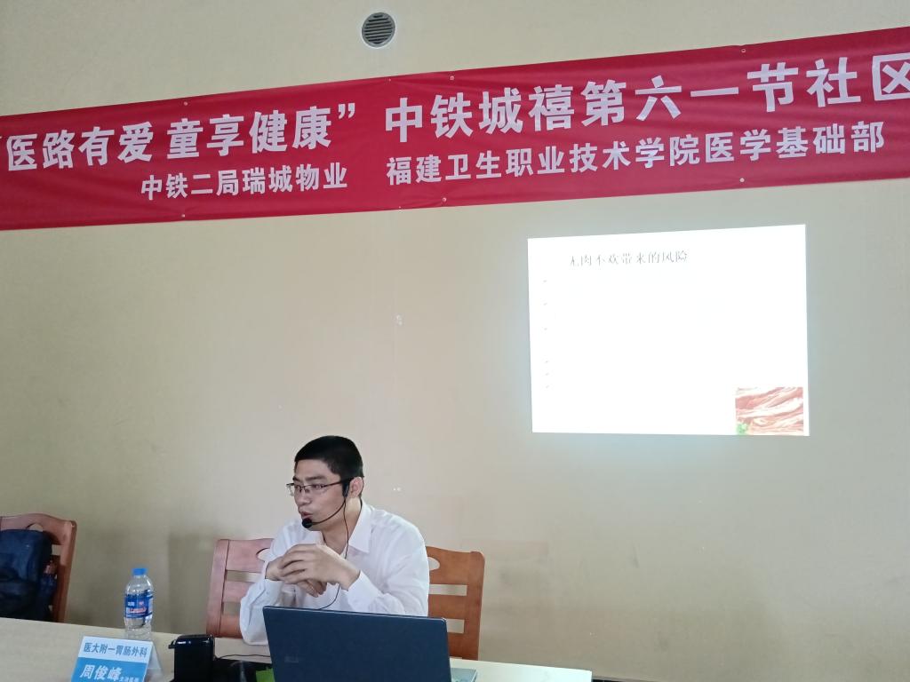 國(guó)際“六一”兒童節(jié)前夕,為踐行健康中國(guó)行動(dòng),關(guān)愛兒童健康,2021年5月29日上午,醫(yī)學(xué)基礎(chǔ)部聯(lián)合護(hù)理學(xué)院、福建醫(yī)科大學(xué)附屬第一醫(yī)院共同在閩侯荊溪社區(qū)中鐵城舉辦了“醫(yī)路有愛,童享健康”健康知識(shí)進(jìn)社區(qū)活動(dòng),該活動(dòng)也是2021年我校科技周與職業(yè)教育周系列活動(dòng)之一。