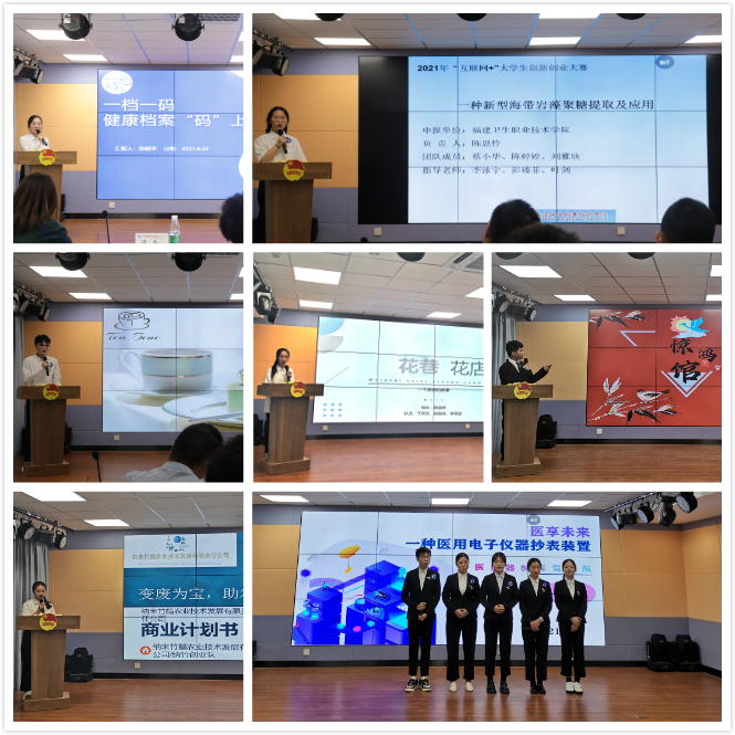 為全面落實習(xí)近平總書記給中國“互聯(lián)網(wǎng)+”大學(xué)生創(chuàng)新創(chuàng)業(yè)大賽“青年紅色筑夢之旅”大學(xué)生回信重要精神,響應(yīng)李克強(qiáng)總理“大眾創(chuàng)業(yè),萬眾創(chuàng)新”的號召,推進(jìn)我校創(chuàng)新創(chuàng)業(yè)教育改革,提升和拓展我校創(chuàng)新創(chuàng)業(yè)教育特色和優(yōu)勢,2021年6月23日,由我校教務(wù)處、團(tuán)委、學(xué)生工作部主辦,創(chuàng)新創(chuàng)業(yè)教育中心與健康管理系團(tuán)總支學(xué)生會承辦的2021年福建衛(wèi)生職業(yè)技術(shù)學(xué)院“互聯(lián)網(wǎng)+”大學(xué)生創(chuàng)新創(chuàng)業(yè)大賽在學(xué)校青年之家多功能廳舉辦。