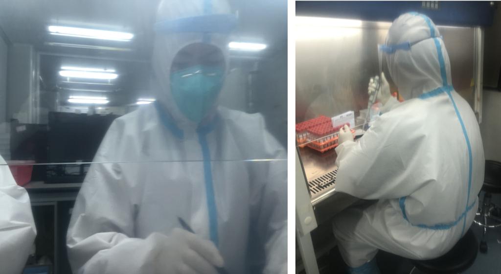 姜皓斌,我校2018級檢驗302班的畢業(yè)生,就職于福州迪安醫(yī)學檢驗實驗室有限公司,支援廣州增城區(qū)。他不懼高溫奮戰(zhàn)一線,為廣州核酸篩查贏得了寶貴的時間,對他而言,每一次進入實驗室工作都是一次考驗,既要精準地完成檢測,又要忍受身體和心理上的煎熬。厚實的防護服密不透風,呼吸面罩容易起霧,進入標本制備區(qū)后不能隨意進出,必須在“全副武裝”下堅持五六個小時,直到完成整個實驗過程。每次走出實驗室,他都是全身濕透,滿臉布滿壓痕。