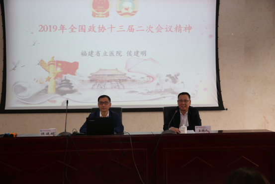 侯建明是全國政協(xié)委員、福建省立醫(yī)院內(nèi)分泌科主任醫(yī)師、福建醫(yī)科大學(xué)教授、博士生導(dǎo)師、福建省立醫(yī)院北院(福建省老年醫(yī)院)副院長。他首先介紹了兩會概況,解讀全國政協(xié)常委會工作報告和政府工作報告,并著重解讀了全國政協(xié)十三屆第二次全體會議中的教育熱點與醫(yī)療熱點,最后闡述了自己的三個提案。一份份的提案,折射出侯主任始終堅守著醫(yī)者初心。他說自己的中國夢就是“醫(yī)生夢”,即充分尊重醫(yī)務(wù)人員的價值。講座妙語連珠,亦莊亦諧,深入淺出,為師生們帶來了豐盛的精神大餐。