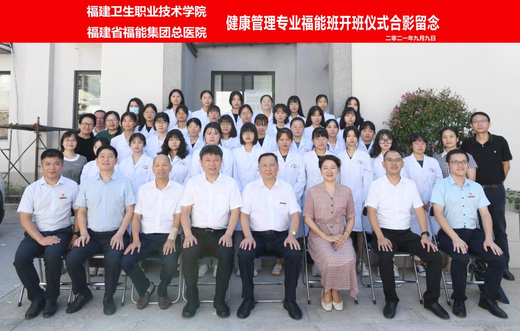 2021年9月9日,在第37個(gè)教師節(jié)來臨之際,福建衛(wèi)生職業(yè)技術(shù)學(xué)院健康管理專業(yè)福能班開班儀式在福建省福能集團(tuán)總醫(yī)院舉行。我校黨委書記曾武祈、醫(yī)院黨總支書記、院長陳斌,副院長羅德壽、李斌、闕啟河,校院相關(guān)職能處室、院系負(fù)責(zé)人和專業(yè)帶頭人、輔導(dǎo)員,以及福能班全體同學(xué)參加,開班儀式由醫(yī)院副院長羅德壽主持。曾武祈和陳斌分別代表校院雙方致辭,學(xué)生杜婧瑩代表全體福能班學(xué)生做開班發(fā)言。會后,與會領(lǐng)導(dǎo)與首屆健康管理專業(yè)福能班合影留念。
