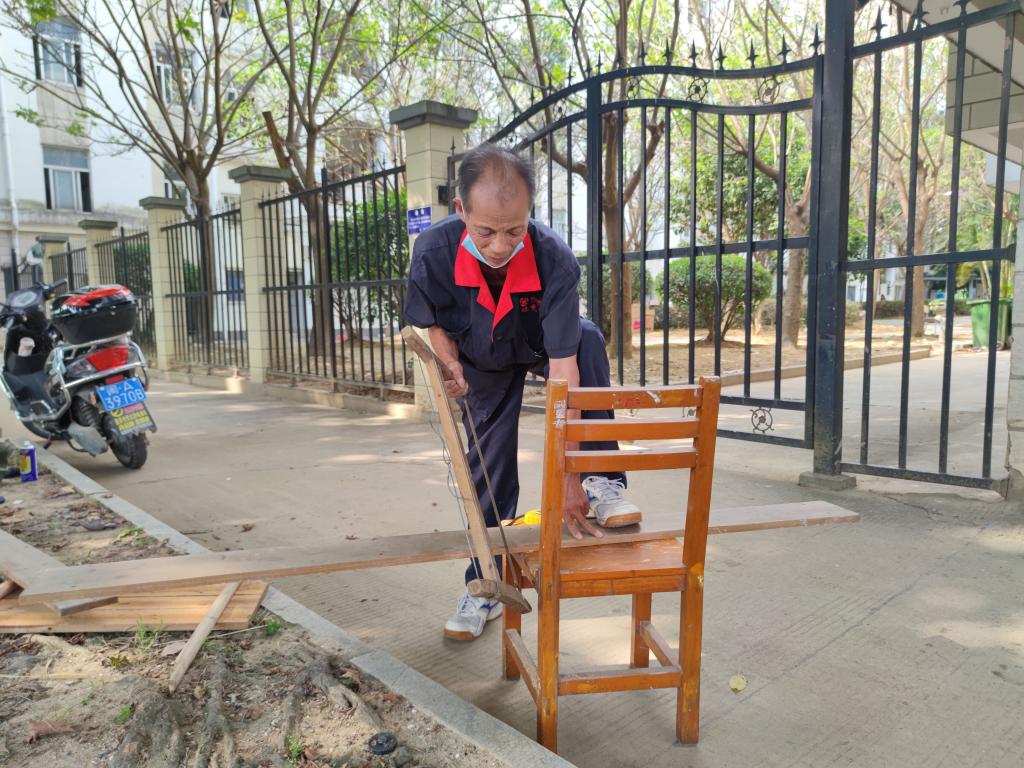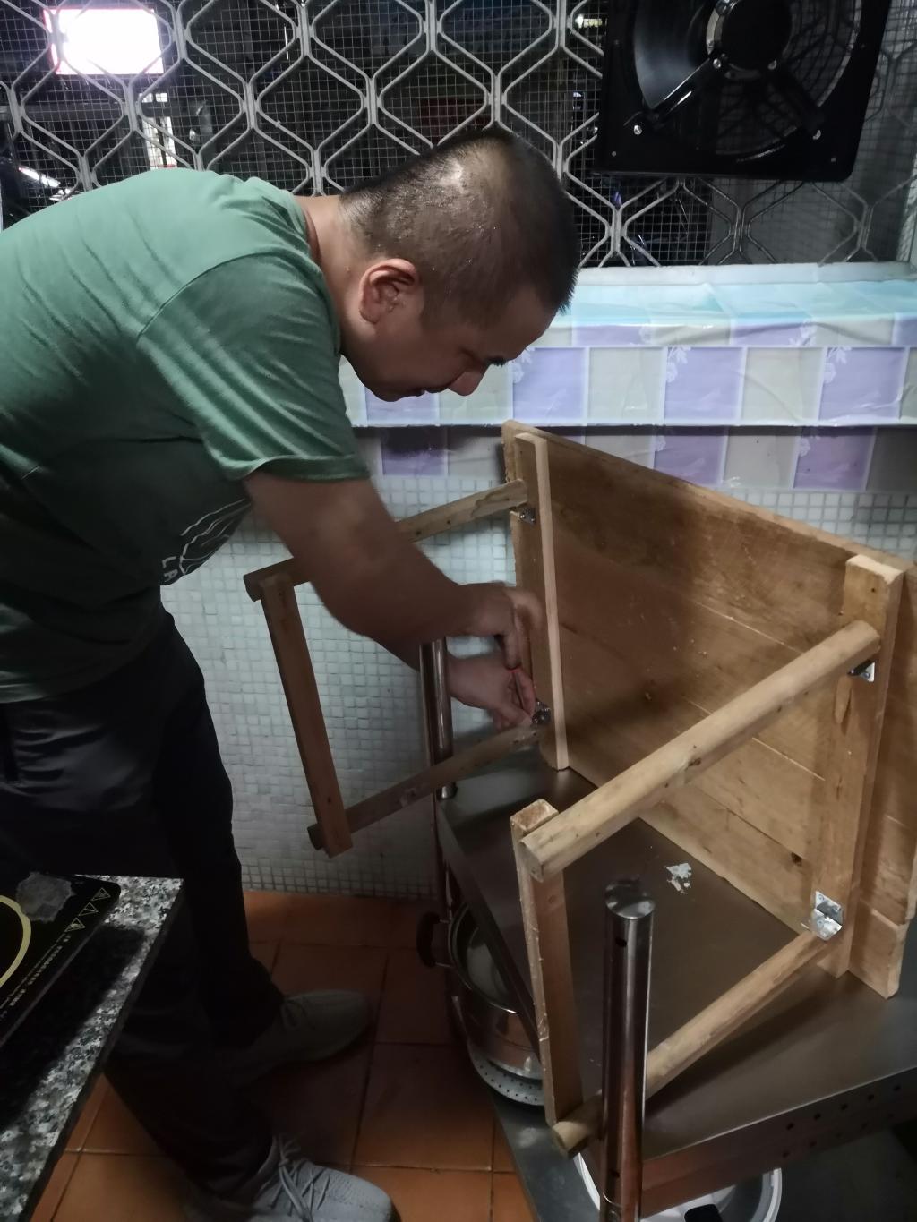 得悉王林慧放置使用電磁爐的桌子為金屬制品,容易導(dǎo)致爆炸等安全問題,且其購(gòu)置合適的桌子存在一定困難,后勤管理處木工洪師傅立即利用業(yè)余時(shí)間免費(fèi)為她們制作一張木質(zhì)桌子以代替原來的金屬桌子。