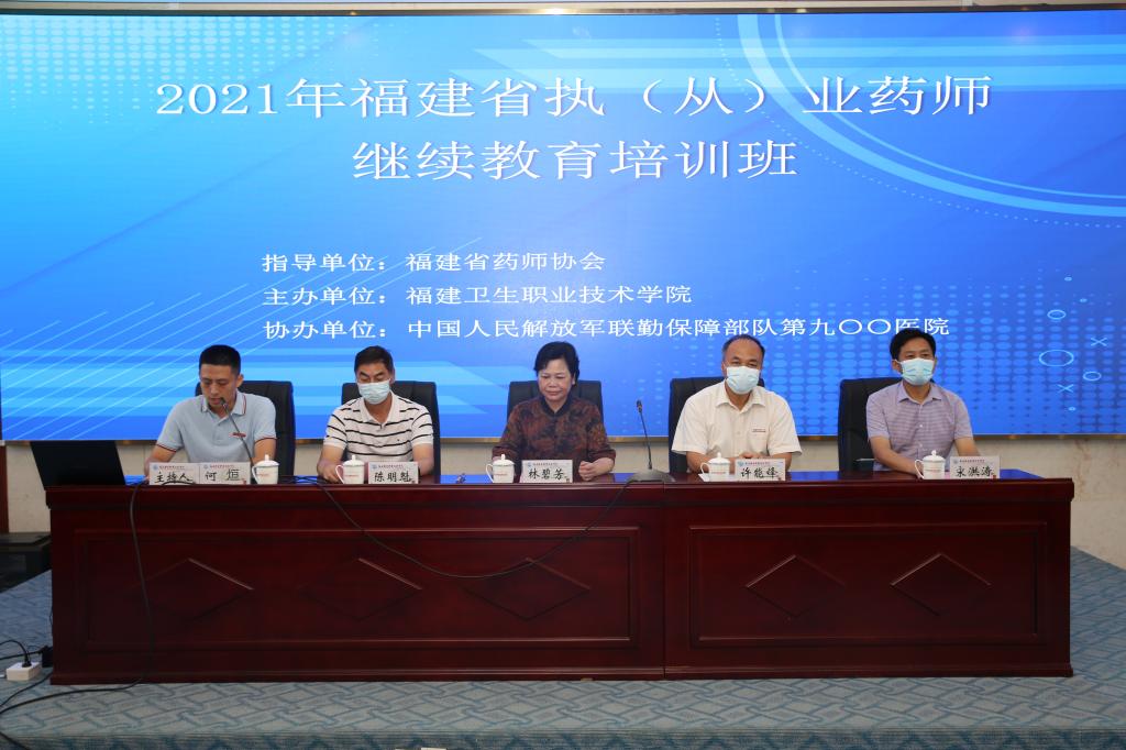 2021年9月23日,2021年福建省執(zhí)業(yè)藥師繼續(xù)教育培訓班在我校實訓樓四樓報告廳順利開班。受疫情影響,本次培訓設置主、分會場,通過直播方式進行。福建省藥師協(xié)會會長林碧芳、秘書長陳明魁等一行5人、我校校長許能鋒、中國人民解放軍聯(lián)勤保障部隊第九〇〇醫(yī)院藥劑科主任藥師宋洪濤,相關部門負責人參加開班儀式。開班儀式由我校繼續(xù)教育學院副院長何烜主持。