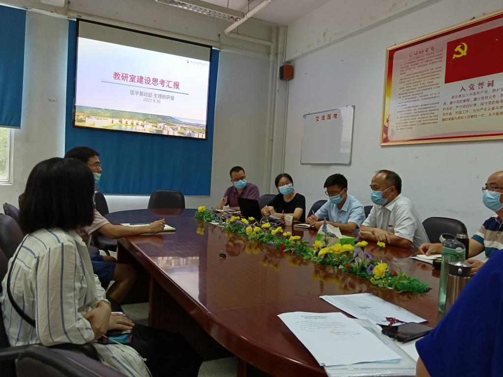 生理教研室教師林玉瓊從組織與團(tuán)隊建設(shè)、日常管理、教學(xué)管理、教改與研究、科研管理與建設(shè)、特色與亮點(diǎn)等方面匯報教研室建設(shè)情況,帶領(lǐng)大家思考和探索教研室工作建設(shè)與發(fā)展。許能鋒鼓勵不同的教研室之間互相交流,取長補(bǔ)短,齊心協(xié)力打造優(yōu)秀的教學(xué)團(tuán)隊,改進(jìn)教師隊伍建設(shè)。