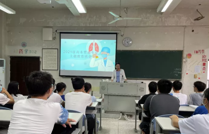 為幫助21級(jí)臨床醫(yī)學(xué)、醫(yī)學(xué)檢驗(yàn)技術(shù)、醫(yī)學(xué)影像技術(shù)三個(gè)專業(yè)(高本貫通)班新生盡快適應(yīng)新的學(xué)習(xí)生活環(huán)境,建立集體歸屬感,認(rèn)識(shí)專業(yè)特點(diǎn)及發(fā)展方向,科學(xué)規(guī)劃學(xué)習(xí)生活。2021年10月14日下午,2021級(jí)高本貫通專業(yè)主題教育班會(huì)在藥學(xué)系第一階梯教室召開,會(huì)議由學(xué)生工作部部長(zhǎng)宋維主持,副校長(zhǎng)黃銘珊、醫(yī)學(xué)系和醫(yī)學(xué)技術(shù)系相關(guān)老師與輔導(dǎo)員,以及104名同學(xué)參會(huì)。