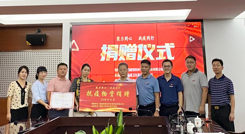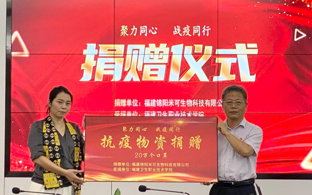 聚力同心,戰(zhàn)疫同行。福建錦陽米可生物科技有限公司向我校捐贈(zèng)20萬個(gè)口罩,健康管理系黨總支第二支部牽線搭橋,攜手為學(xué)校疫情常態(tài)化防控工作保駕護(hù)航。