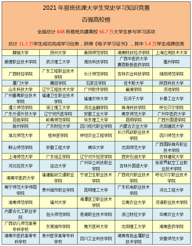 2021年9月,由“易班網(wǎng)”主辦,依托“易班優(yōu)課”平臺(tái)線上開展的“2021年易班優(yōu)課大學(xué)生黨史學(xué)習(xí)知識(shí)競(jìng)賽”公布獲獎(jiǎng)名單。經(jīng)過一個(gè)月的激烈角逐,學(xué)校獲得“優(yōu)秀組織獎(jiǎng)”,孔祥榮老師被評(píng)為“優(yōu)秀指導(dǎo)老師”。