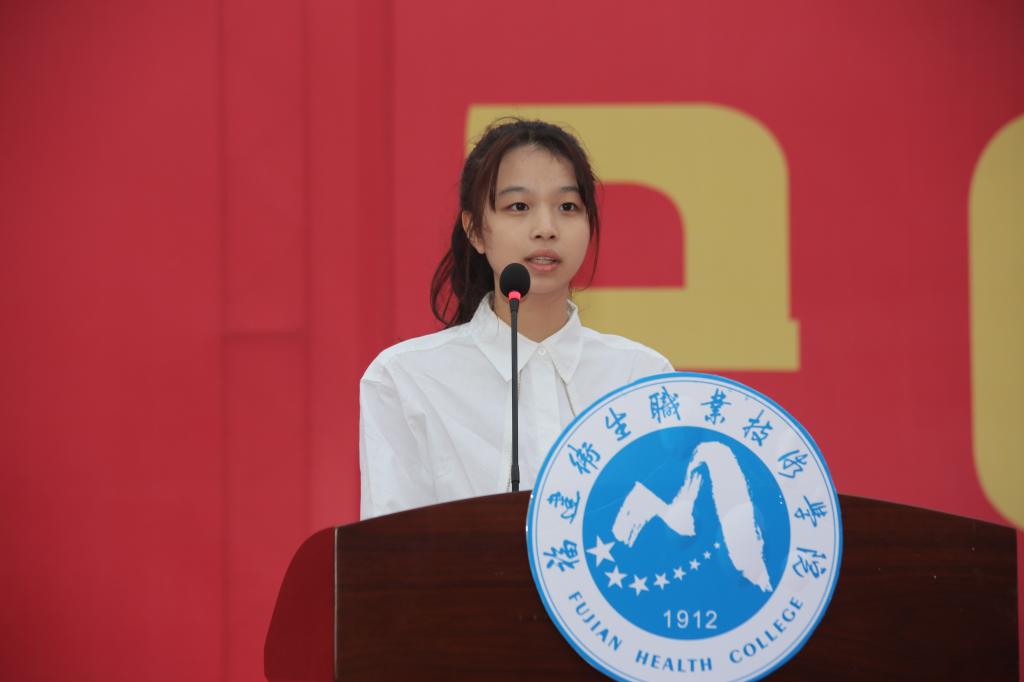 校團(tuán)委學(xué)生副書記20護(hù)理303班黃杏怡同學(xué)作為學(xué)長代表,回顧了自己在閩衛(wèi)院一年的經(jīng)歷,分享了在過去一個月里參與疫情防控工作難忘的經(jīng)歷和感悟,向?qū)W弟學(xué)妹們送上美好的祝愿,希望他們的未來熠熠生輝,成為更好的自己。