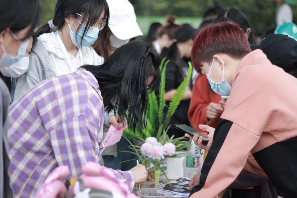園藝社精心布置場(chǎng)地,展現(xiàn)社團(tuán)獨(dú)有特色,與之相關(guān)的趣味小游戲吸引同學(xué)們駐足參與