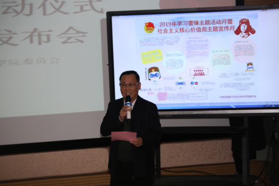 學(xué)院黨委曾武祈書記在講話中說,“小衛(wèi)”形象的發(fā)布是塑造和弘揚(yáng)學(xué)院敬畏生命、引領(lǐng)健康、無私奉獻(xiàn)的校園文化的好舉措。雷鋒精神人人可學(xué),奉獻(xiàn)愛心處處可為,志愿服務(wù)也是學(xué)院文明的重要標(biāo)志,他號召廣大師生跟著“小衛(wèi)”學(xué)雷鋒,積小善為大善,發(fā)揮專業(yè)優(yōu)勢,搭把手、出分力,為美好生活、健康生活貢獻(xiàn)青春力量。