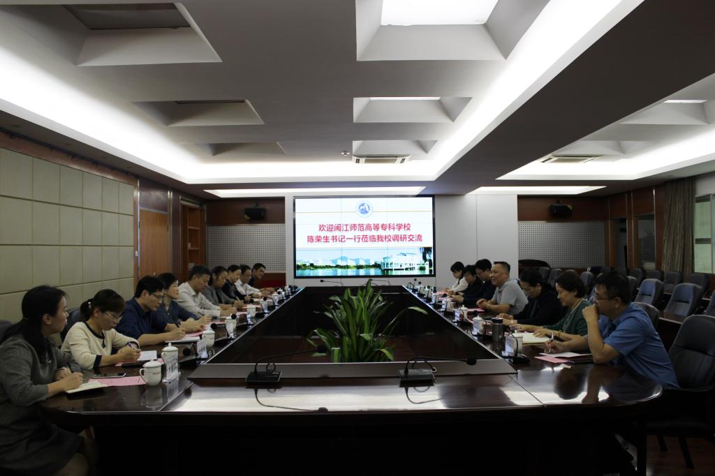 10月28日下午,閩江師范高等??茖W(xué)校黨委書記陳榮生一行9人來訪我校,考察調(diào)研醫(yī)護(hù)類專業(yè)及實(shí)訓(xùn)基地建設(shè)等情況。我校黨委書記曾武祈、副校長鄭翠紅在行政樓四樓會(huì)議室接待客人并舉行座談,黨政辦公室、教務(wù)處以及相關(guān)院系負(fù)責(zé)人參加座談會(huì)。