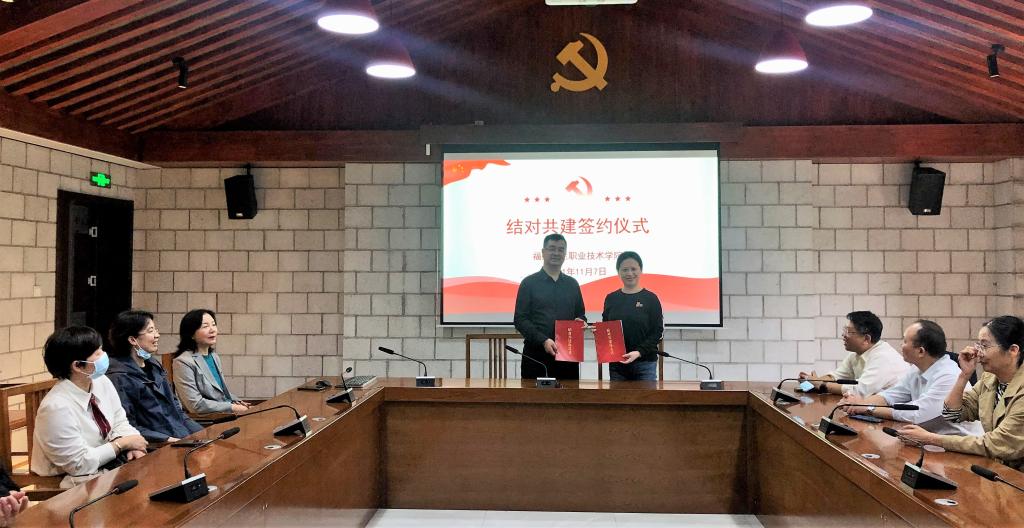 農(nóng)工民主黨福建衛(wèi)生職業(yè)技術(shù)學(xué)院支部主委翁繩和、醫(yī)學(xué)技術(shù)系系黨總支書記陳俊穎作為雙方支部代表,簽署了結(jié)對(duì)共建協(xié)議書。共建雙方將以此為契機(jī),圍繞隊(duì)伍建設(shè)、資源共享、活動(dòng)組織等方面,充分開展合作交流,以求互相促進(jìn)提高、共促中心工作發(fā)展。