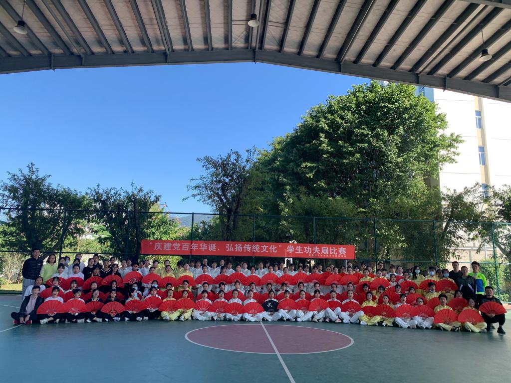 11月11日下午,我校2021年體育文化節(jié)太極功夫扇比賽在鋼架籃球場舉行。本次比賽主題為“慶建黨百年華誕,弘揚傳統(tǒng)文化”,由校體育運動委員會主辦,體育部、團(tuán)委、學(xué)生工作部共同承辦,社團(tuán)部跆拳道功夫協(xié)會、校學(xué)生會體育部、各二級學(xué)院(系、部)學(xué)生會體育部協(xié)辦。