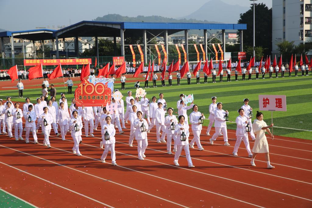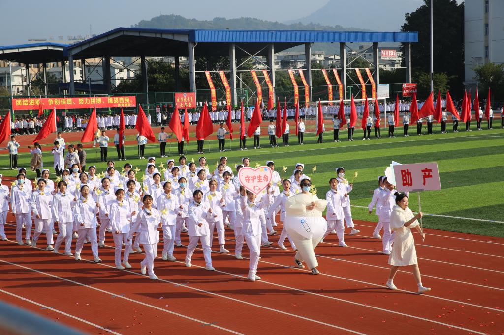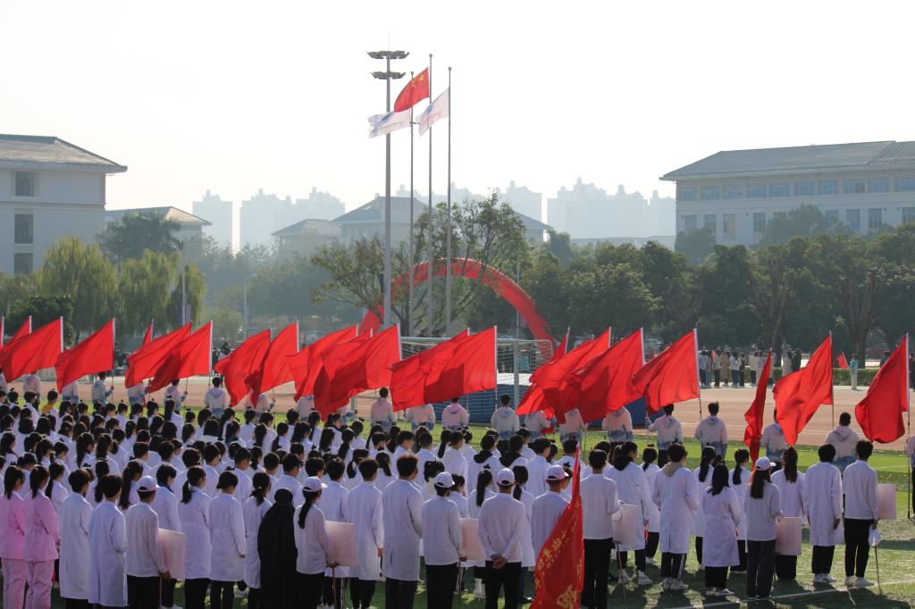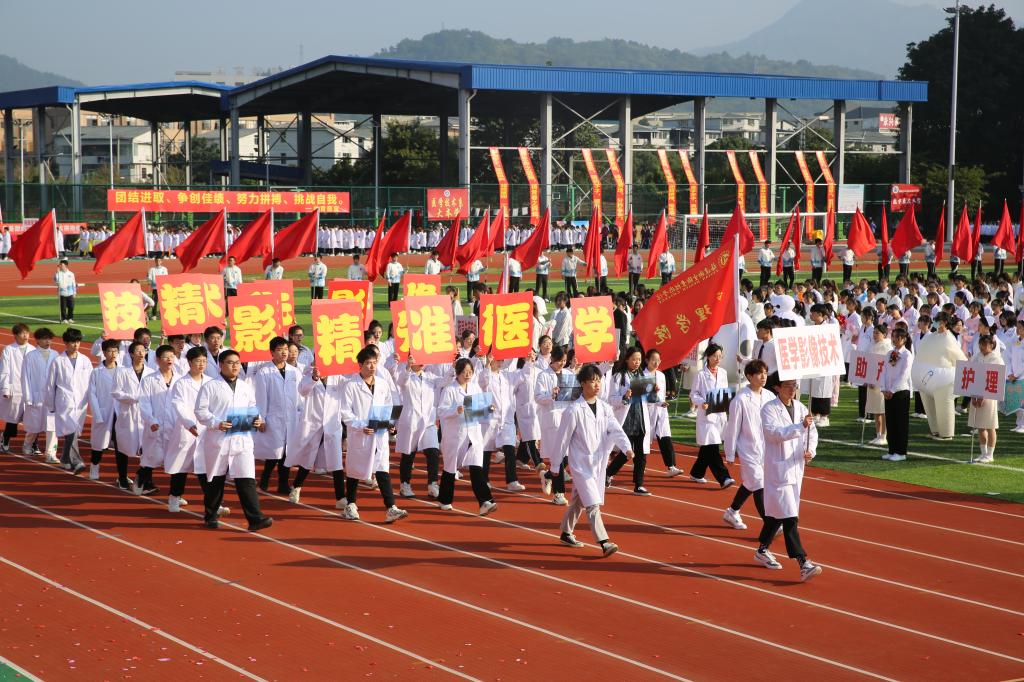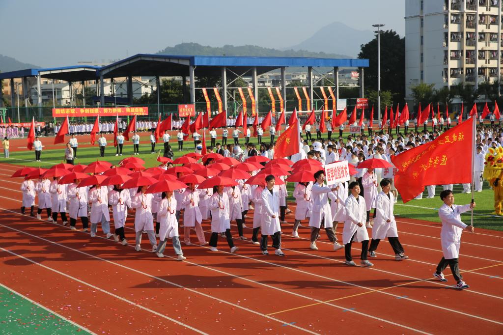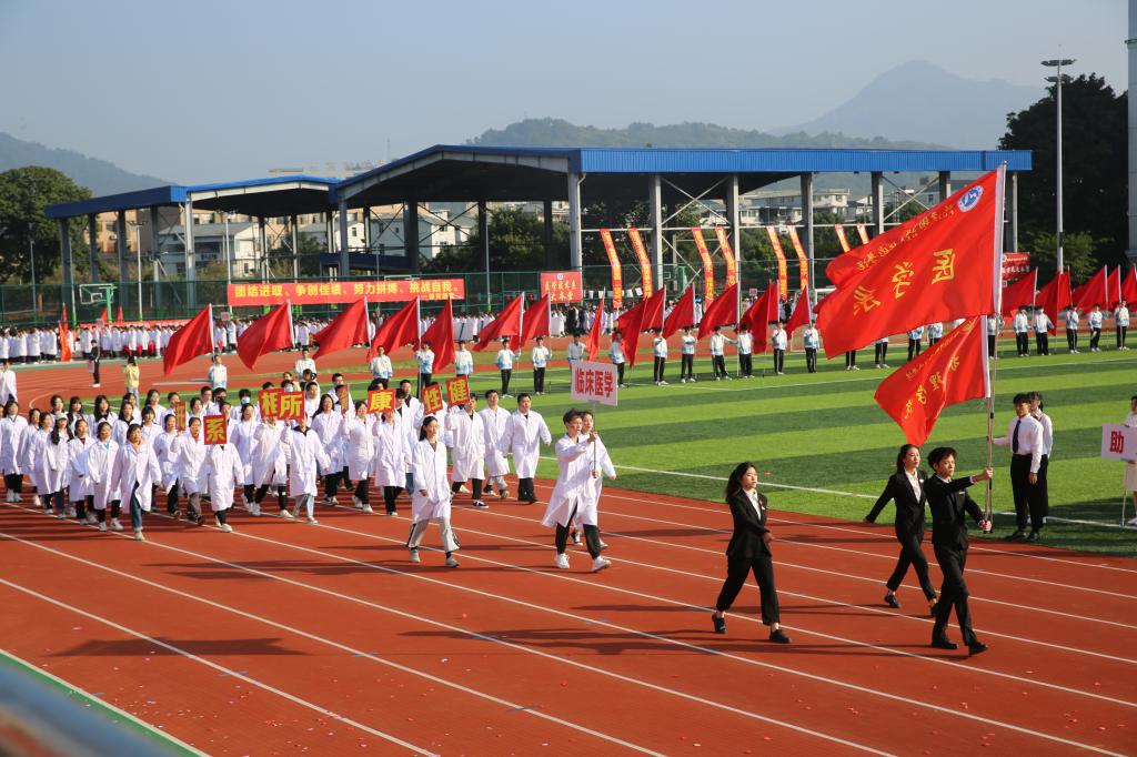 伴隨著《運動員進行曲》,國旗校旗護旗隊、會徽會牌隊、鮮花彩旗隊依次精彩亮相,各院系運動員代表、教職工代表、裁判員代表以飽滿的姿態(tài)和昂揚的精神,成為運動場上一道靚麗的風景線。他們充分展現(xiàn)了學校緊跟“健康中國”“健康福建”步伐,致力“醫(yī)體融合”“體教融合”發(fā)展,推動全民健身與全民健康深度融合的工作成效。