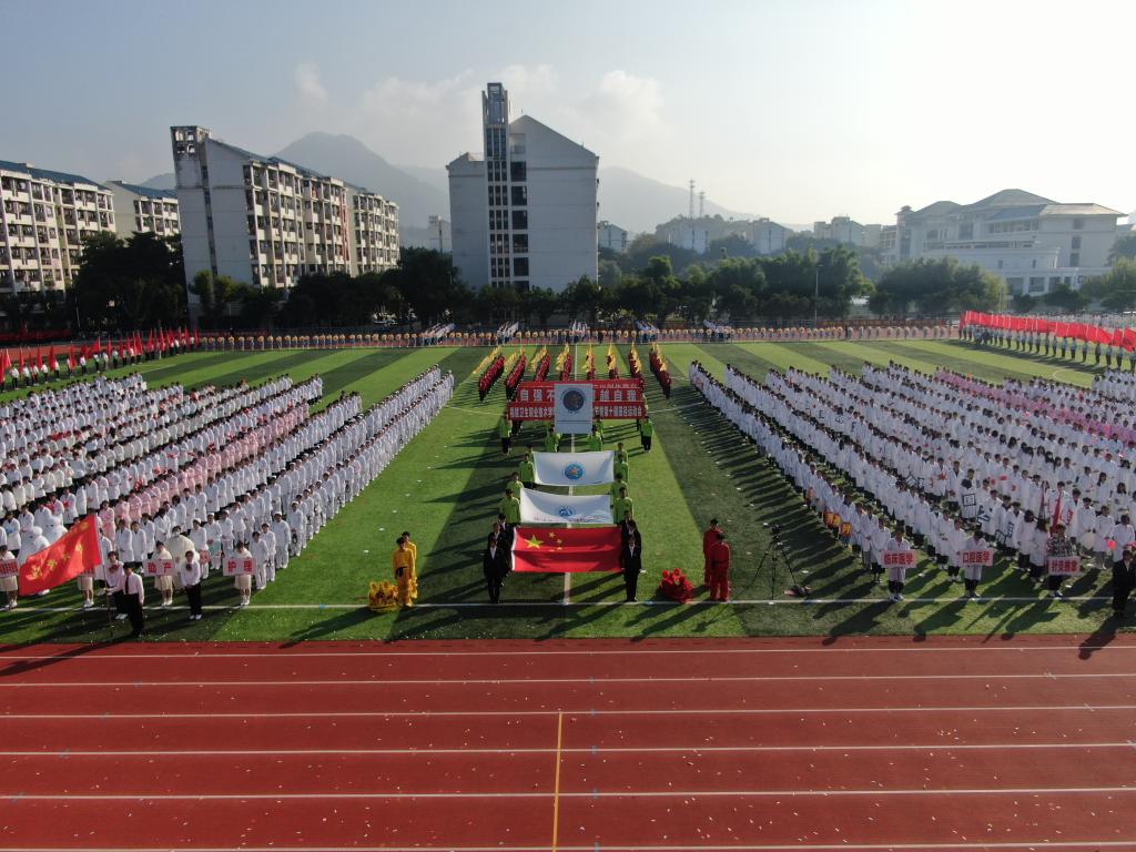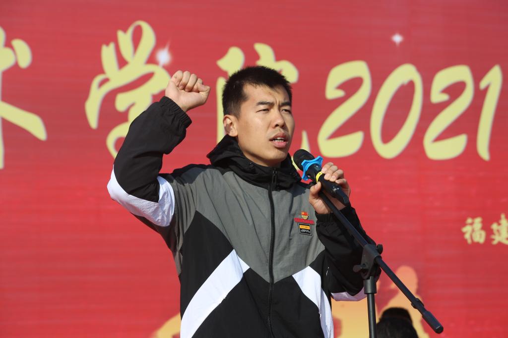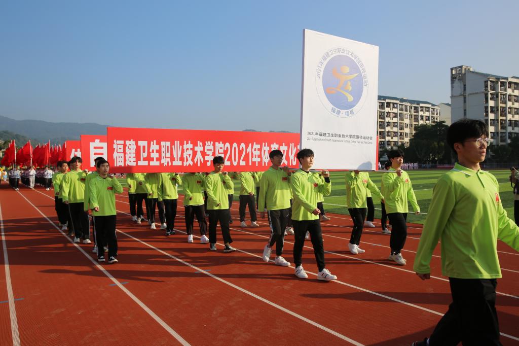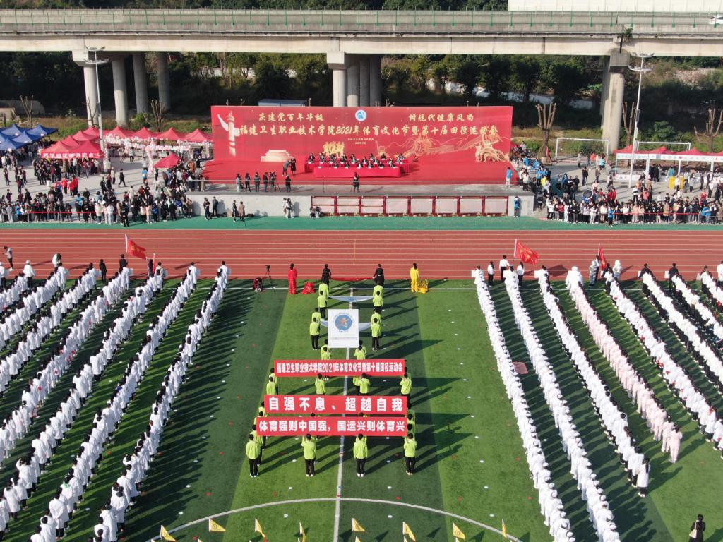 隨后,曾武祈宣布:福建衛(wèi)生職業(yè)技術學院2021年體育文化節(jié)暨第十屆田徑運動會開幕!