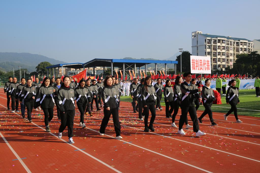 黨委書記曾武祈致開幕辭。他首先對本屆運動會的勝利召開表示熱烈祝賀,向全體體育運動委員會成員、裁判員、教練員、運動員和工作人員表示衷心感謝。他指出,學校歷來高度重視體育工作,將體育作為“五育并舉”的重要一環(huán),形成了“以體育智”“以體育心”“以體育人”的體育文化氛圍。他希望,全校師生員工能在運動會中展示出閩衛(wèi)院人的精神風采,凝聚出更強大的精神力量,推進學校體育工作再上新臺階。
