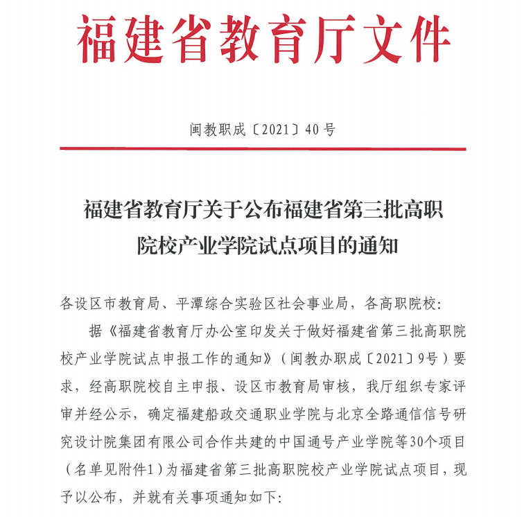 福建省高職院校產(chǎn)業(yè)學(xué)院試點(diǎn)工作,由高職院校自主申報(bào),福建省教育廳組織專家評審,最終確定30個(gè)項(xiàng)目為福建省第三批高職院校產(chǎn)業(yè)學(xué)院試點(diǎn)項(xiàng)目。