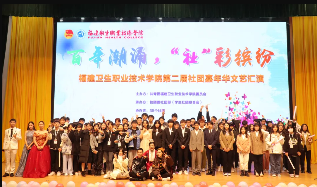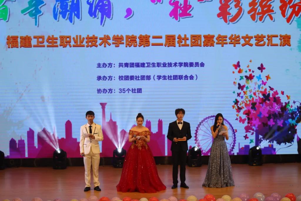 為深入貫徹黨的十九屆六中全會(huì)精神和習(xí)近平新時(shí)代中國(guó)特色社會(huì)主義思想,進(jìn)一步加強(qiáng)校園文化建設(shè),展示社團(tuán)成員良好精神風(fēng)貌和青春氣息。2021年12月23日晚,我校舉辦“百年潮涌‘社’彩繽紛”2021年學(xué)生社團(tuán)嘉年華文藝匯演暨迎新年晚會(huì)。本次晚會(huì)由校團(tuán)委主辦,35個(gè)社團(tuán)承辦,校黨委書(shū)記曾武祈、校長(zhǎng)許能鋒,副校長(zhǎng)黃銘珊、鄭翠紅,各二級(jí)院系黨總支負(fù)責(zé)人、宣傳部及學(xué)生社團(tuán)指導(dǎo)單位師生代表400余人線下觀看匯演,“福建衛(wèi)生職業(yè)技術(shù)學(xué)院”抖音直播間15000人次同步收看晚會(huì)。