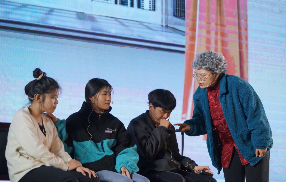 話劇社的小品《隔離不了的愛(ài)》,講述了隔離病毒,不隔離愛(ài)的暖心故事。