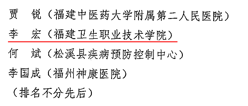 近日,福建省預(yù)防醫(yī)學(xué)會(huì)發(fā)布表彰決定,我校李宏老師榮獲2021年福建省預(yù)防醫(yī)學(xué)會(huì)“先進(jìn)個(gè)人”榮譽(yù)稱(chēng)號(hào)。