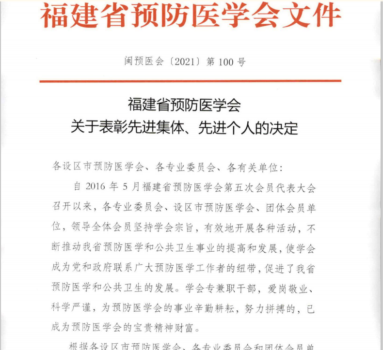 喜報(bào)|我校教師榮獲2021年福建省預(yù)防醫(yī)學(xué)會(huì)先進(jìn)個(gè)人榮譽(yù)稱(chēng)號(hào)