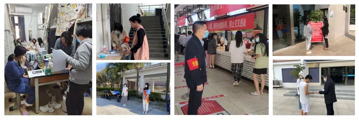 院直機(jī)關(guān)黨員同志們?cè)谑程谩⒖爝f驛站、超市等校內(nèi)人流量大的區(qū)域迅速集結(jié),主動(dòng)開(kāi)展黨員志愿服務(wù),積極投入到秩序維護(hù)、防疫督導(dǎo)等各項(xiàng)工作中;各院系黨員突擊隊(duì)深入學(xué)生宿舍,進(jìn)行線上教學(xué)督查;深入學(xué)生服務(wù)中心、圖書館等場(chǎng)所,督導(dǎo)學(xué)生規(guī)范佩戴口罩,嚴(yán)格執(zhí)行校內(nèi)防疫制度。各級(jí)黨組織凝聚力量,共同努力,充分發(fā)揮“一名黨員一面旗”的作用。